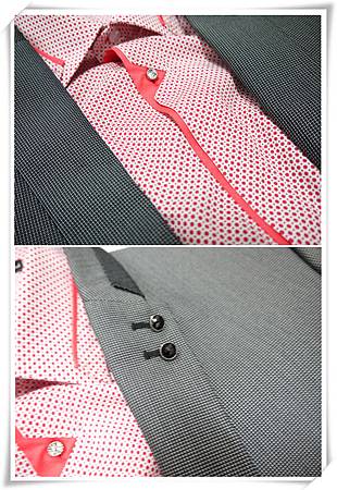 襯衫上的鈕釦呼印了西裝外套領子上的鈕釦