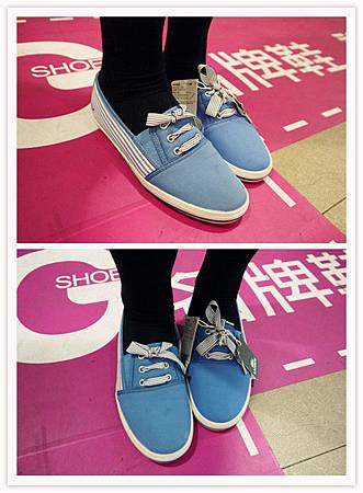 可愛藍色搭配線條的休閒鞋